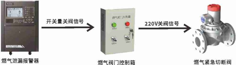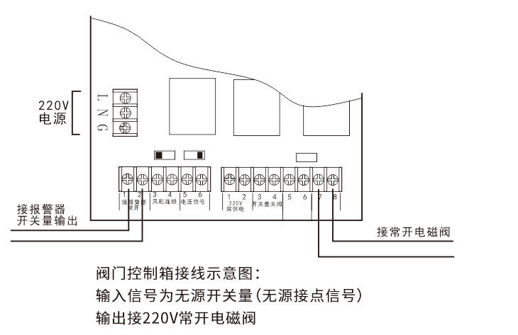 客户需求:燃气报警器报警后输出无源开关量到阀控箱,阀控箱输出220V电压到电磁阀,控制220V常开阀