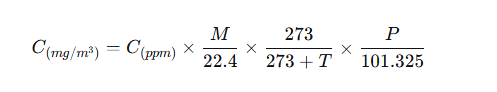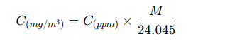 C(mg/m3)=C(ppm)×M/24.045